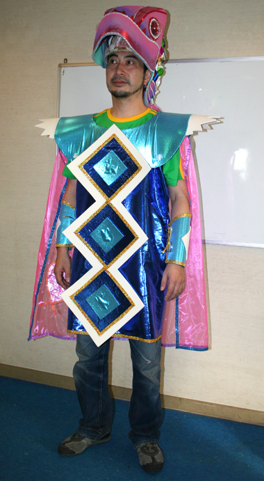 アレゴリアと共にわさわさ歩くパートです。 練習は2回程度でもOK。練習時間はあんまりとれないけど、ちょっと本格的な衣裳着てパレードに参加してみたい〜って方!ぜひぜひ!! 衣裳はブラジル輸入で、葉っぱがスパンコールやラメでキラキラ光ってます〜♪ |